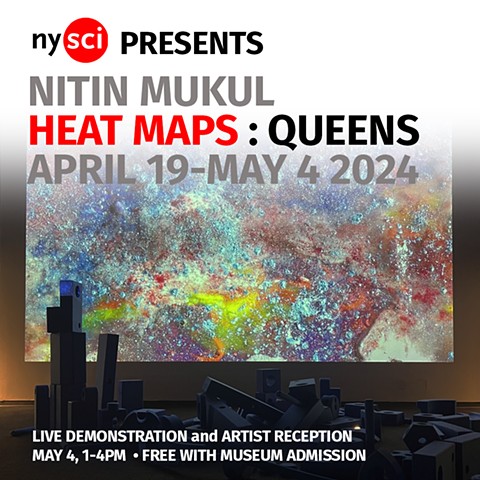 Heat Maps Queens is a new series of durational painting video works. These pieces were made on location in 3 selected localities in the borough of Queens, NYC. In the way that the 19th century school of painters known as the Impressionists which included Monet, Pisarro and others disrupted accepted norms of landscape painting by seeking to depict the atmospheric effects of light while painting outdoors on location, Mukul’s durational painting videos capture the effects of the light, heat, and climate conditions at a specific site and time. Heat Maps Queens incorporate references to hip hop culture, connecting the storytelling of iconic rap artists with origins in these neighborhoods to the realities of these landscapes.